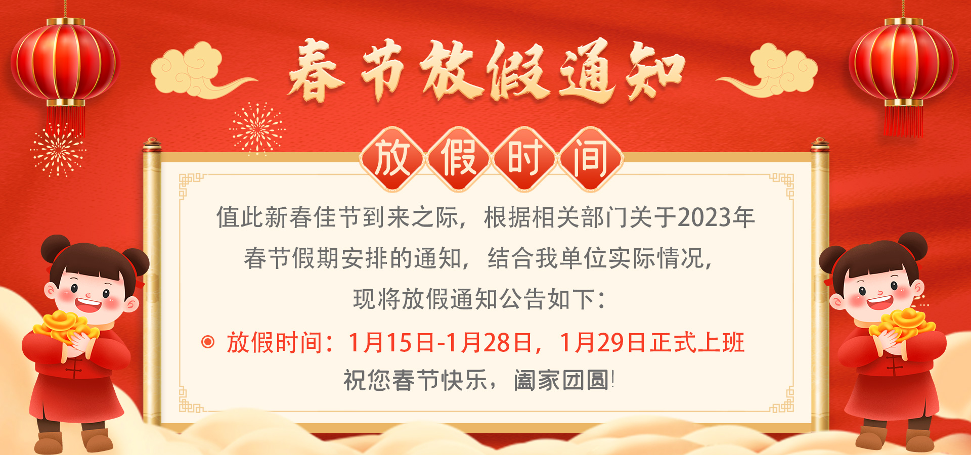 首頁 新聞資訊 公司資訊 關(guān)于公司2023年春節(jié)放假通知